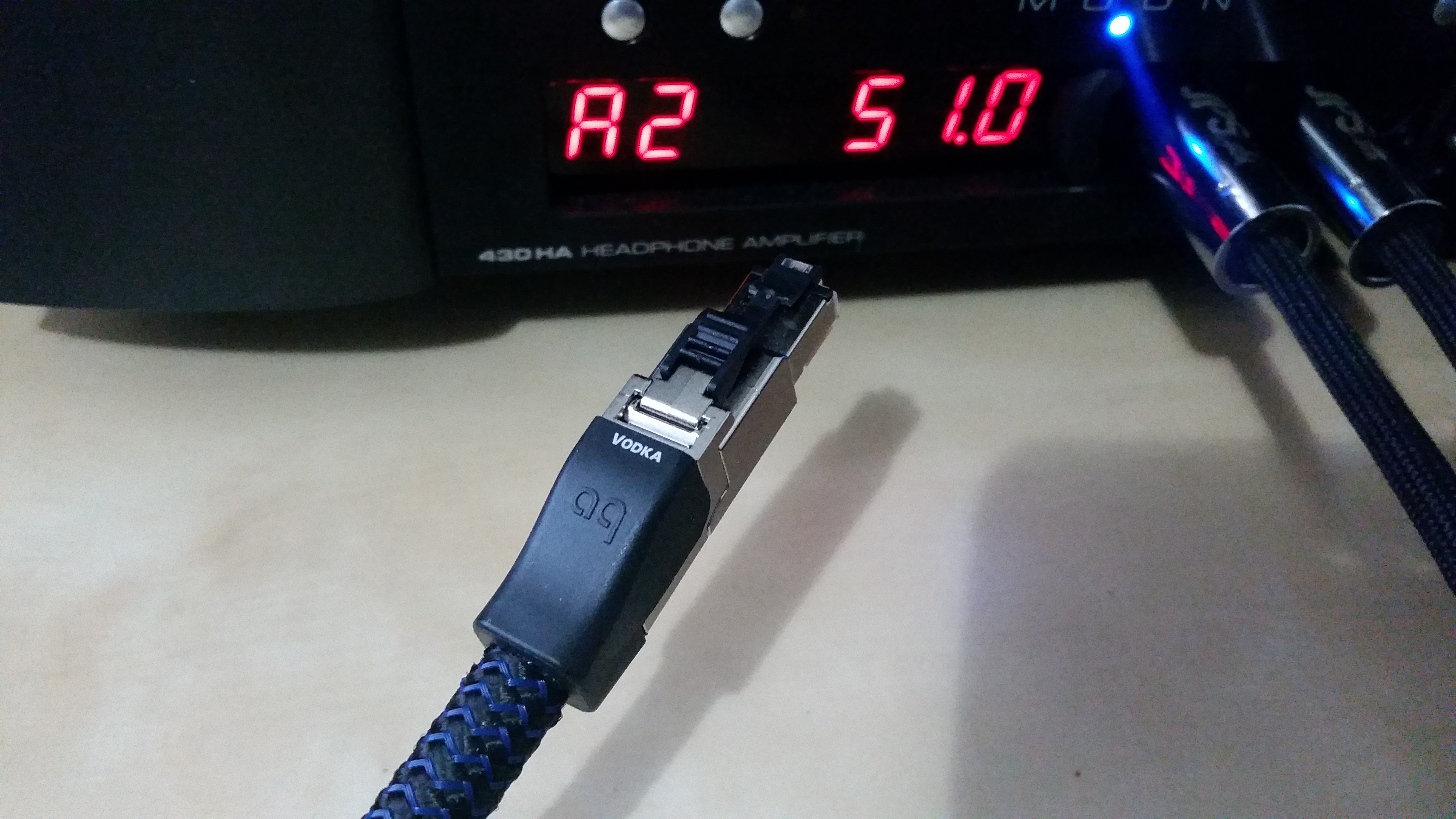 The Vodka cable's build quality is amazing. I've never graced an ethernet cable this beautiful. The connectors were authoritative and had a great quality feel to them. However, I only care about the sound. Here were my impressions after a few days of listening to both cables. The Vodka trades some low-end for a refined overall presentation. Less warm if you will.