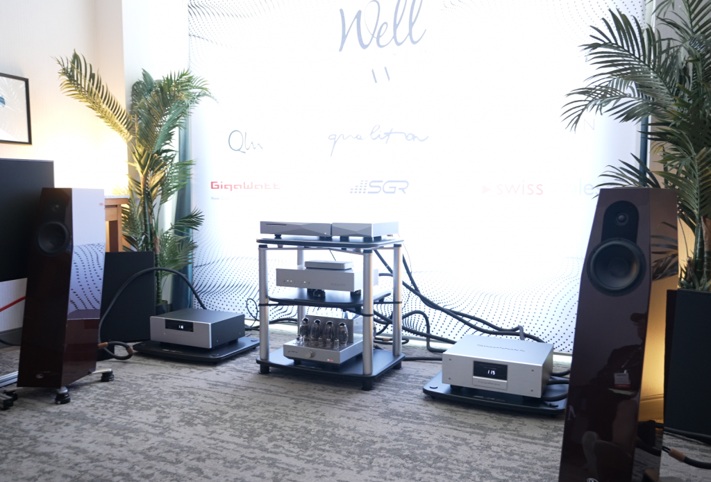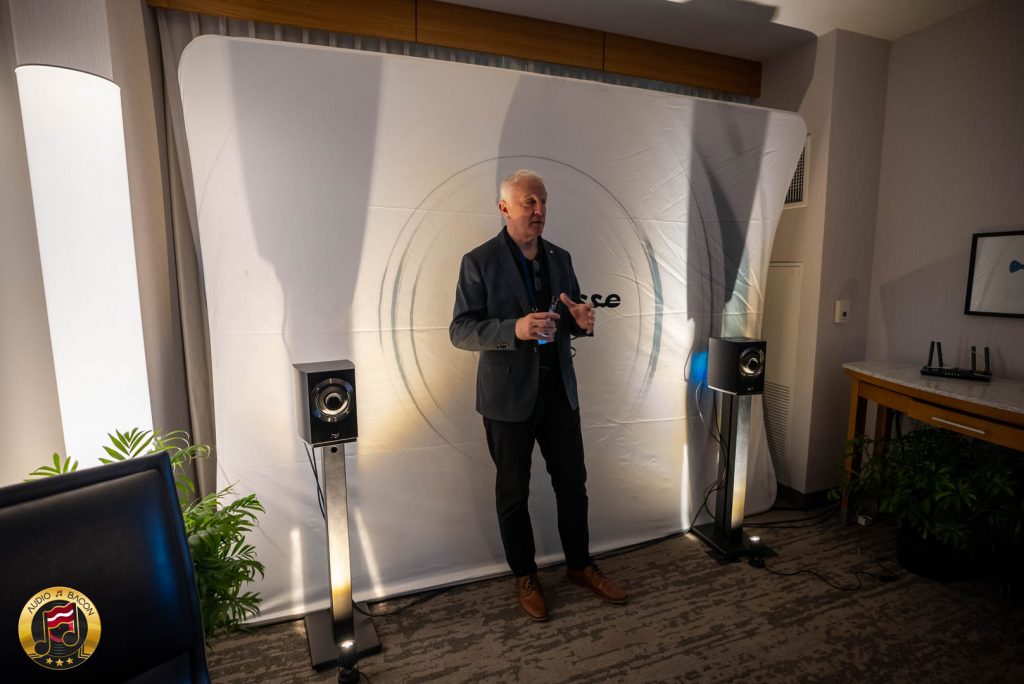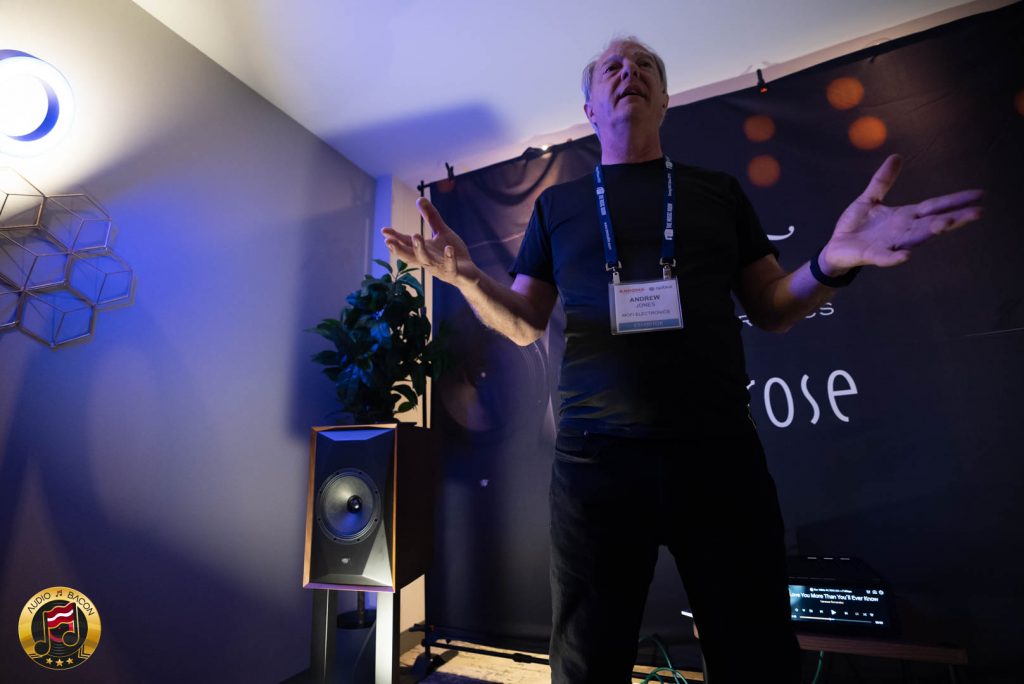 I randomly bumped into these guys in the cafeteria at the hotel I was staying at. And coincidentally, they were next on my list of rooms to visit! I was given a 20-minute pre-show demo of their new Abyss Amplifier and Rialto active loudspeaker.