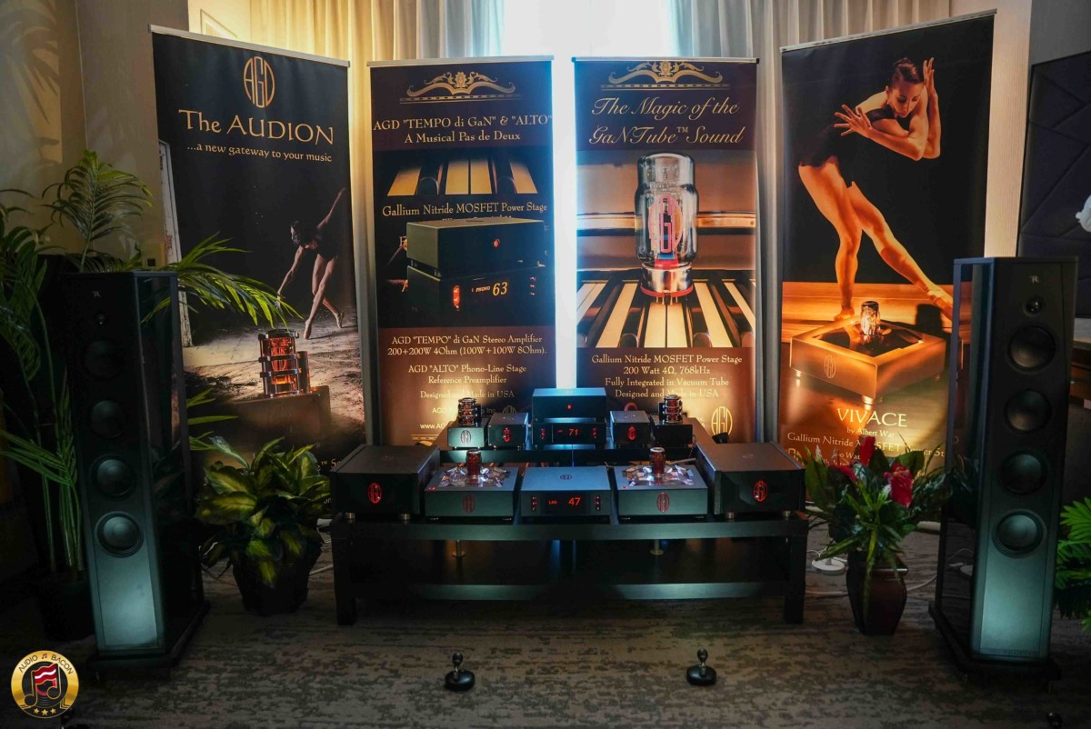 AGD Productions once again showcased one of the most visually striking setups at the show. Their Duet GaN-Power monoblocks—built around Gallium Nitride GaNTube tech and refined with copper internals—were paired with Rosso Fiorentino loudspeakers, handcrafted in Florence under Francesco Rubenni’s guidance. The system struck an immediate visual and sonic harmony, blending high design with focused engineering.