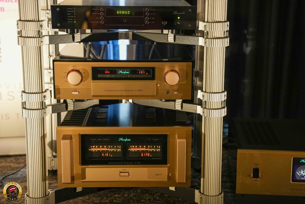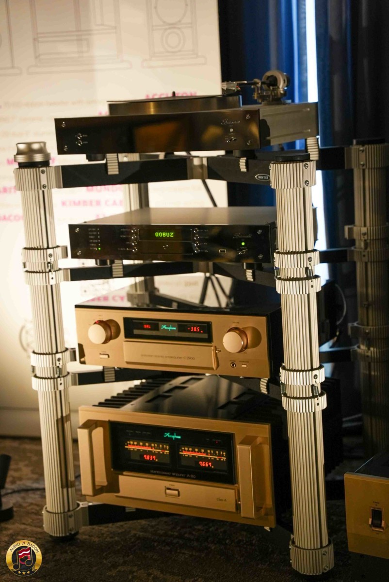 Master Artist Audio, the custom speaker line from Audio Video Artistry, presented their Signature Towers driven by a full suite of reference-level gear. At the front end: the Accuphase C2900 preamp ($25,975) and A80 amplifier ($26,575), paired with a Burmester 151 streamer ($27,575) and 217 turntable ($25,000). Power conditioning came via the Accuphase PS1250 ($17,575), with everything resting on a Solid Tech Rack of Silence and connected by Kimber Cable throughout.