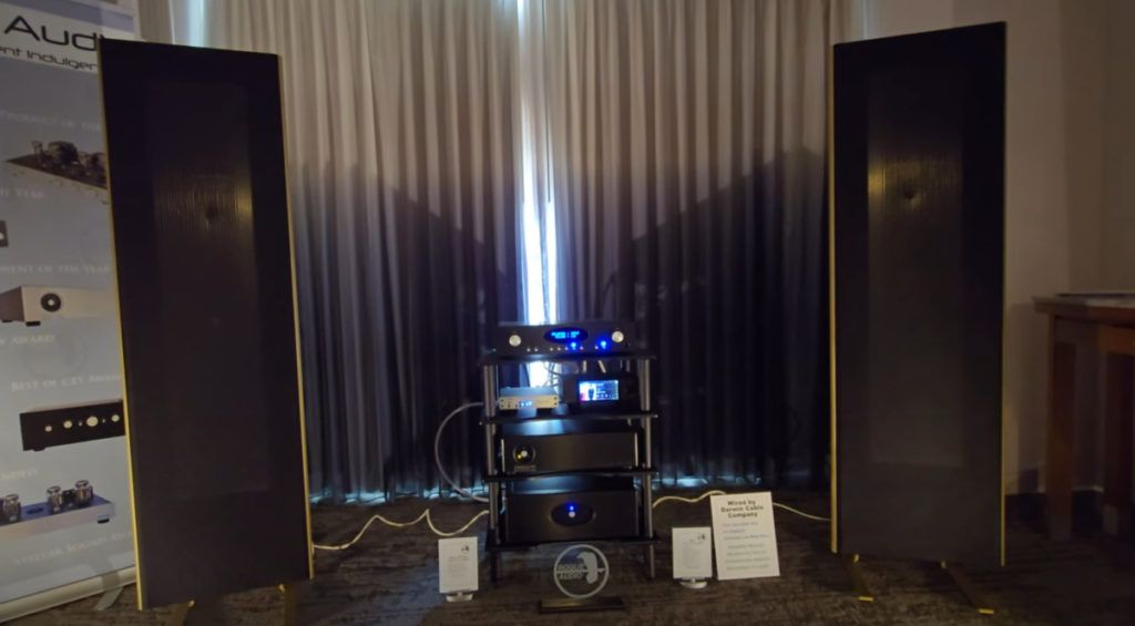 I'm really loving these minimal setups at the show. Bel Canto Design showcased their U.S.-made Class D electronics driving a second pair of really green $68,000 YG Acoustics Hailey 3 floorstanders in an intimate room setup. The system delivered a rich, full-bodied sound with inviting warmth and openness. Partnered with gear from Cardas Audio, Harmonic Resolution Systems, and Pure Fidelity, I found the presentation to be fun and musically engaging.