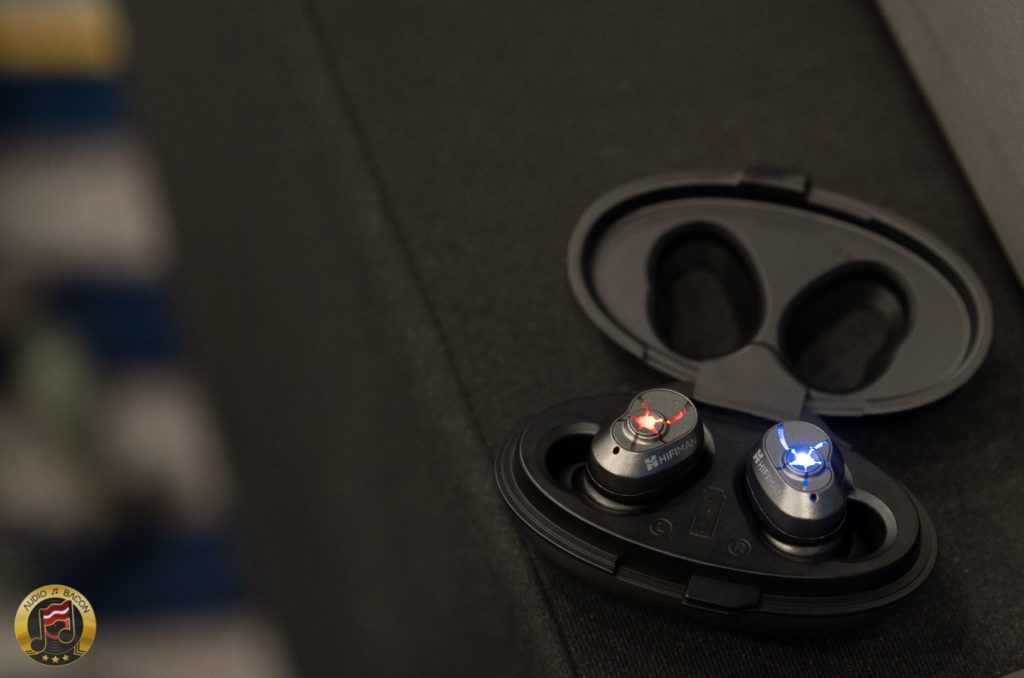 The HiFiMAN TWS 600 comes in a sleek charging capsule. It feels pretty good on the fingertips. Some true wireless buds I've tried have actually fallen out of my ear from normal use. On the other hand, the TWS 600 was a very nice fit. Tilting and shaking my head back and forth and it was completely stable. I also like the techie, spacey glow and look.