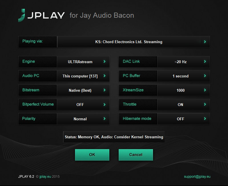 While some audiophiles will manually optimize the Windows OS on their servers, JPLAY adds to that process by increasing the computer's timer resolution accuracy to the maximum possible. JPLAY uses special ultra low-latency RAM to store music samples and massively pre-queues them so the sound driver can access them faster. It also leverages the lowest latency networking available (in a unique 'StreamerMode' mode involving two PCs) to utilize the smallest playback buffers of any software player on the market. This is all done in a fanatical attempt to attain the absolute minimum number of computer cycles needed to accomplish 'perfectly timed' digital audio playback.