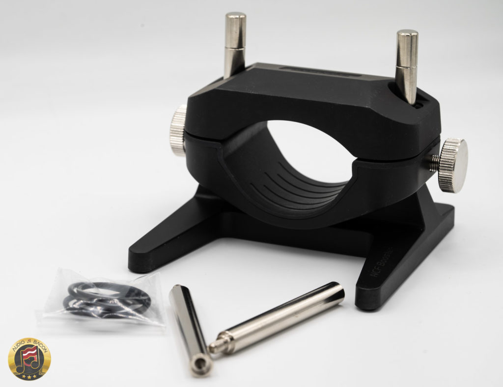 - Top clamp unit: stainless steel block and audio-grade NCF nylon resin.