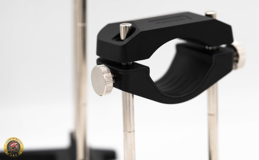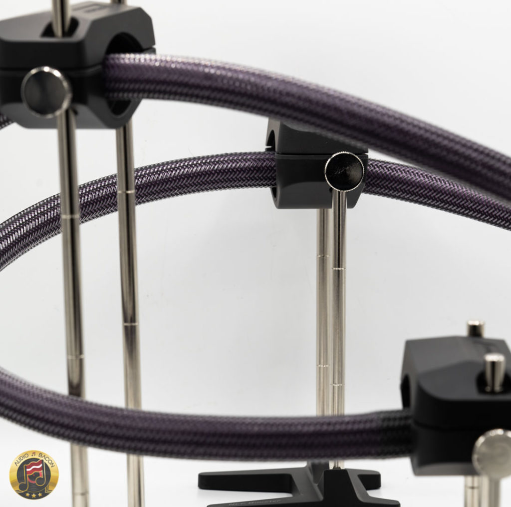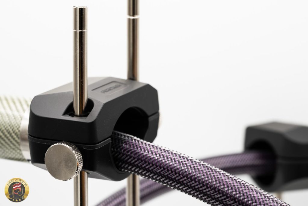 Off the bat, using both top and bottom clamps prove to be "too much of a good thing." Using just the bottom clamp - or resting the top clamp on the connectors (at the preamp and amp), seems to strike a better balance.