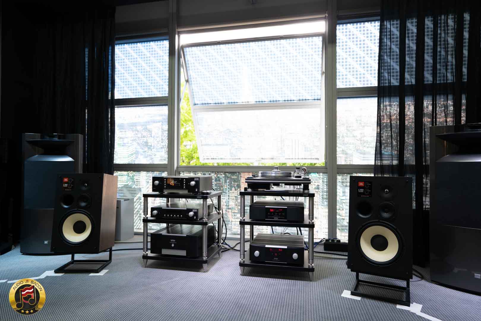 I've heard the L100 Classics plenty of times. Great sound all around. Not to mention: the comfy couch and breeze from the open window was also a blessing after a long day of listening.