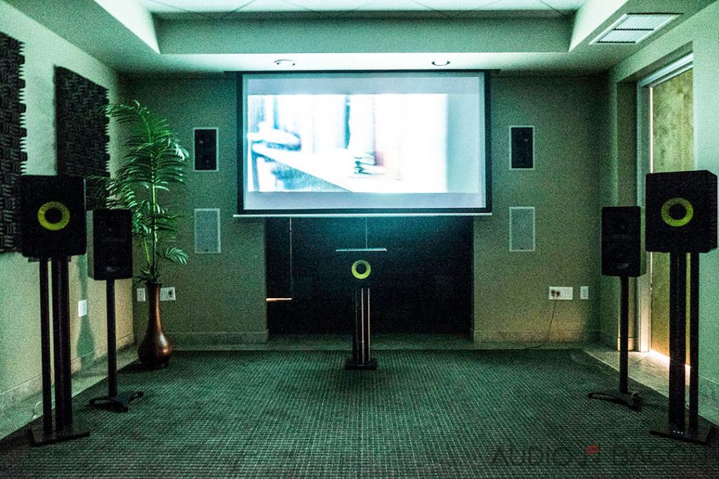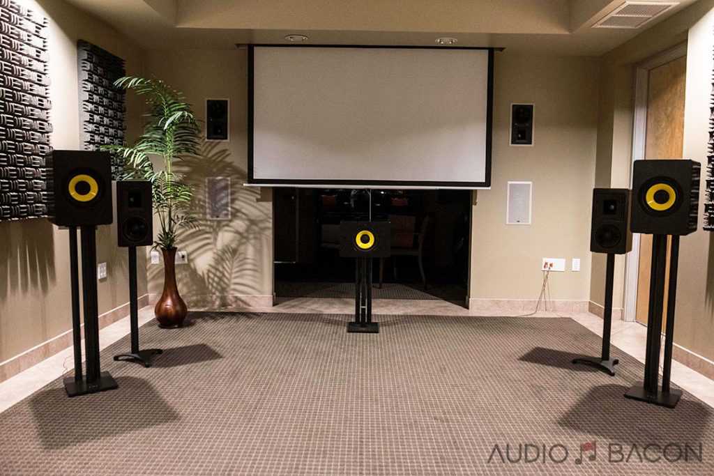 In this configuration, left and right CCB-8s were active along with the center CCB-8 channel. This coaxial design was meant to be the perfect center channel. Most center channels will have 4-5 drivers arranged symmetrically. This emphasized the benefit of a sweet spot and could possibly cause comb-filtering in a room. The coincident nature of the coaxial driver mitigates this problem. After shifting to left and right seats, I could confirm this.