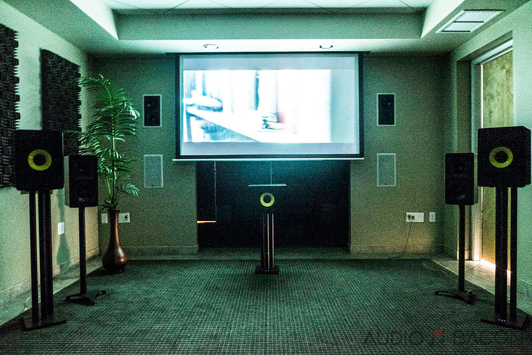 In this configuration, left and right CCB-8s were active along with the center CCB-8 channel. This coaxial design was meant to be the perfect center channel. Most center channels will have 4-5 drivers arranged symmetrically. This emphasized the benefit of a sweet spot and could possibly cause comb-filtering in a room. The coincident nature of the coaxial driver mitigates this problem. After shifting to left and right seats, I could confirm this.