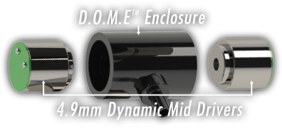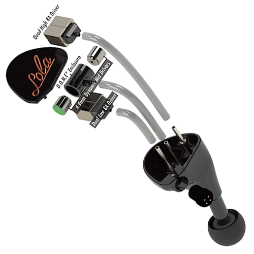 The Lola is the first hybrid IEM from JH Audio. However, instead of using the dynamic drivers for the low-end, they're used for the midrange. What makes this design even more interesting is the patented design. The two 4.9mm dynamic drivers are facing each other in a 3D printed Dual Opposing Mid Enclosure (D.O.M.E.) and the amount of air between the drivers are tuned for a specific sound. Effectively, this creates a 9.8mm midrange driver. Dual low and quad high (same ones used in the Layla) balanced armatures are used for a total of 8 drivers per channel.