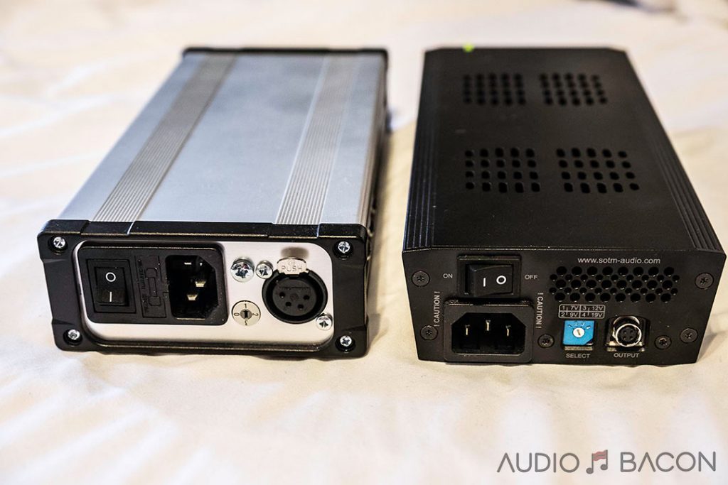 First, the sPS-500 goes up to 19 volts, which may suit a larger array of equipment (like the Gigabyte BRIX and other servers). They're similar in size, but the SR4 is much heavier - must be that toroidal transformer. Both of these supplies are tonally similar (a good thing), very clear, musical, and smooth sounding. As far as sound, the SR4 is immediately more dimensional, more textured, more nuanced, with a tighter low-end. The sound just reaches further into the room with more shape and presence. However, most will grab the SOtM sPS-500 for its power output (it has more continuous power) and flexibility, especially in powering multiple devices or larger devices. I currently have one powering both my modem and router. A extremely versatile and great sounding power supply I'll be keeping around.