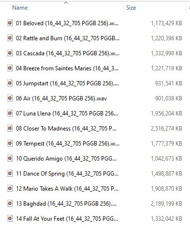 On my AMD Threadripper, each track took about 4 minutes to convert to 705.6/768 kHz @ 32 bits, Ludicrous mode. For WAV files, this album was originally 640 MB and the after processing 20GB. That's 32X the original with no compression.