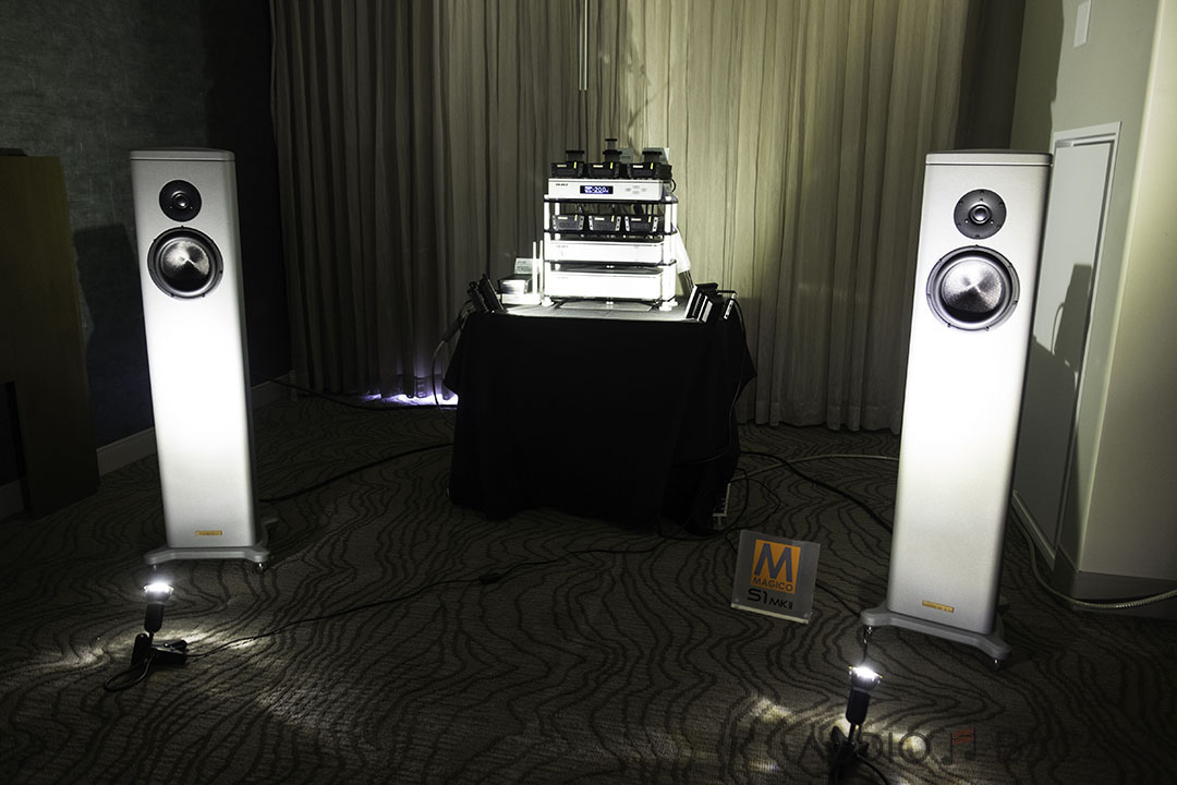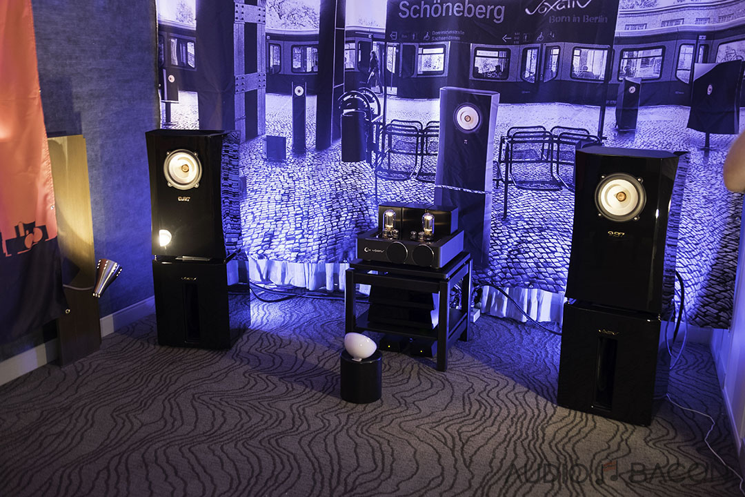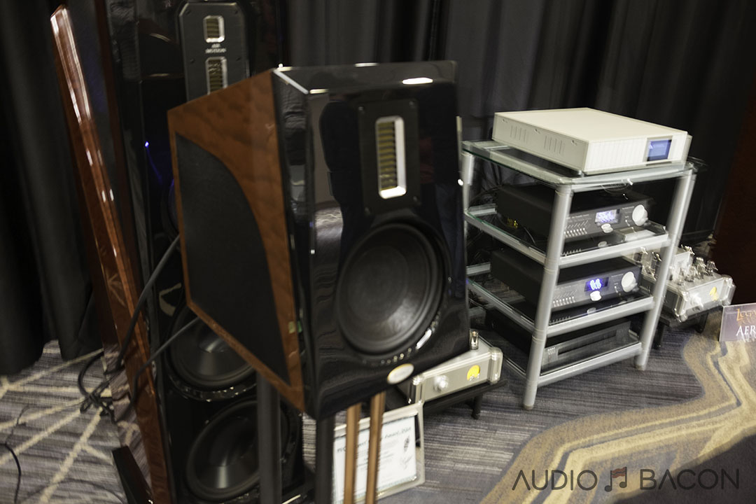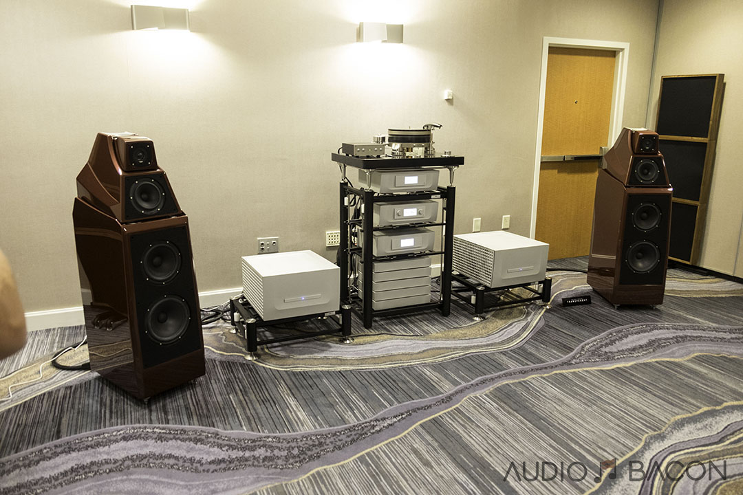 The Voxativ 9.87s ($34,900) were one of the most articulate and transparent sounding setups at the show. Plentiful depth, infinite air, and pinpoint accurate imaging.[/caption]