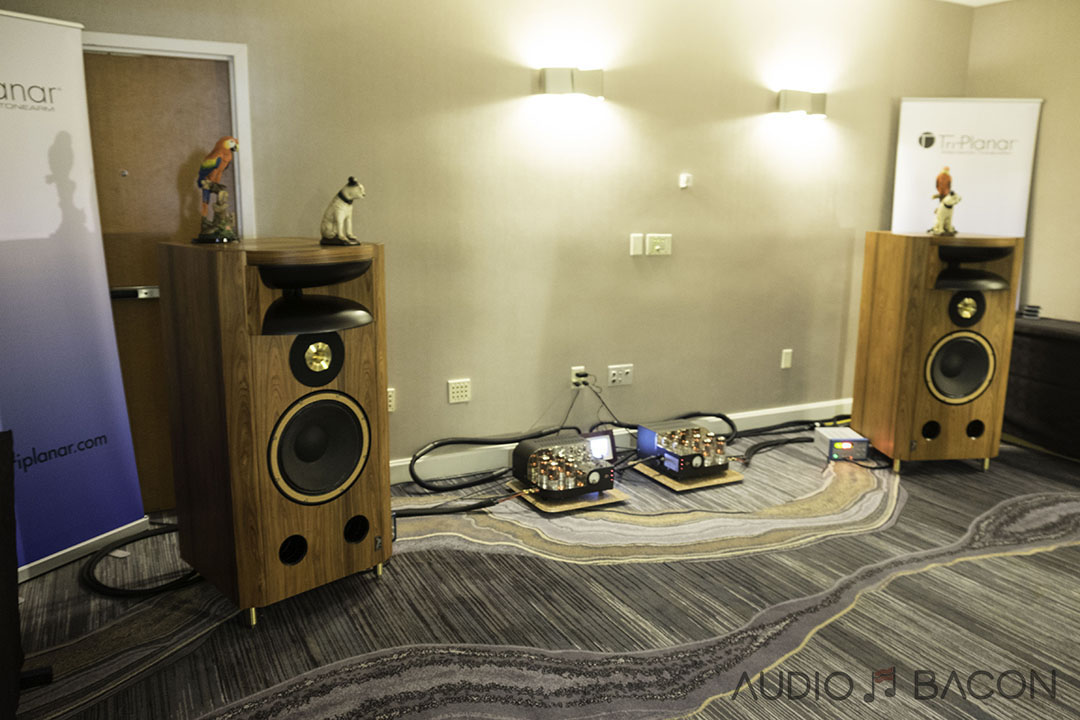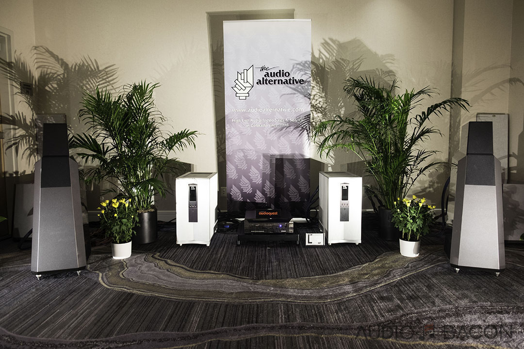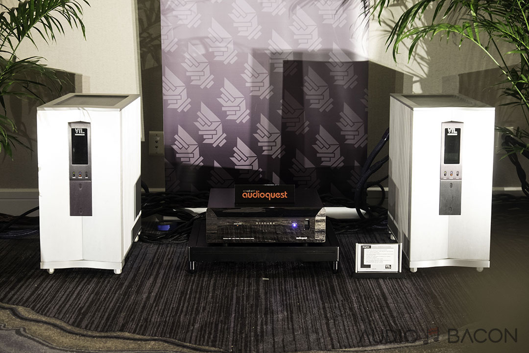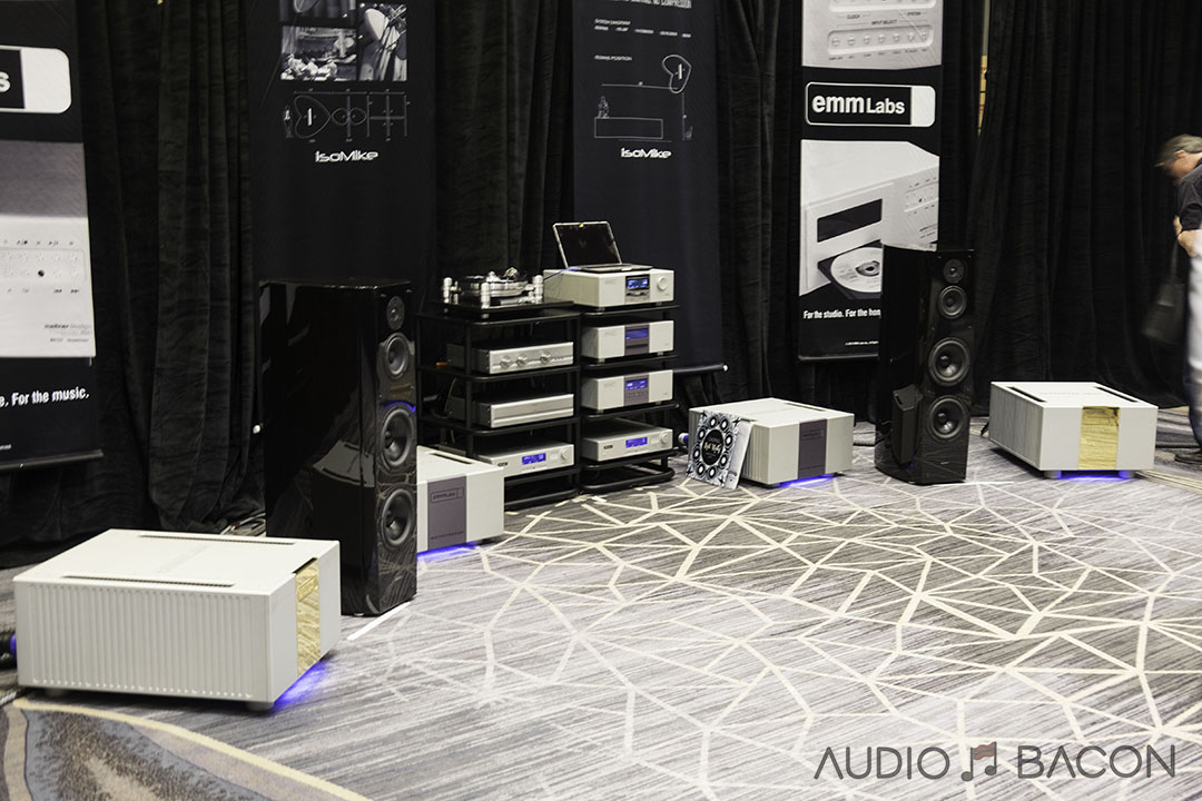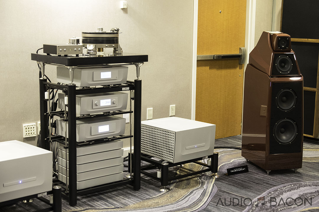 The Voxativ 9.87s ($34,900) were one of the most articulate and transparent sounding setups at the show. Plentiful depth, infinite air, and pinpoint accurate imaging.[/caption]