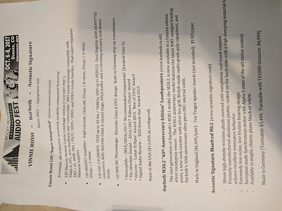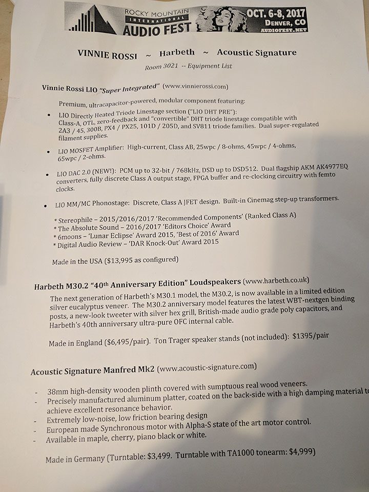 The pairing of Vinnie Rossi's LIO integrated amplifier ($13,995 with all the options) with the Harbeth 40th Anniversary 30.2 loudspeakers ($6,495) provided a very sweet and euphoric sound. The LIO allows one to upgrade the linestage, add a DAC module, add a phonostage, and even a headphone amp.[/caption]