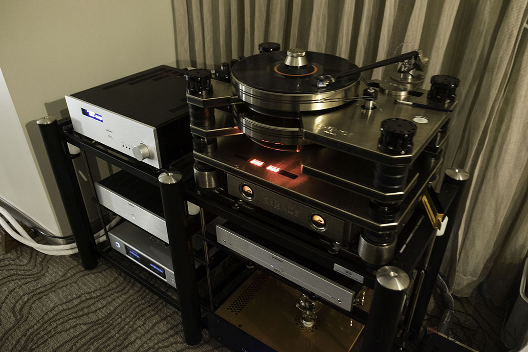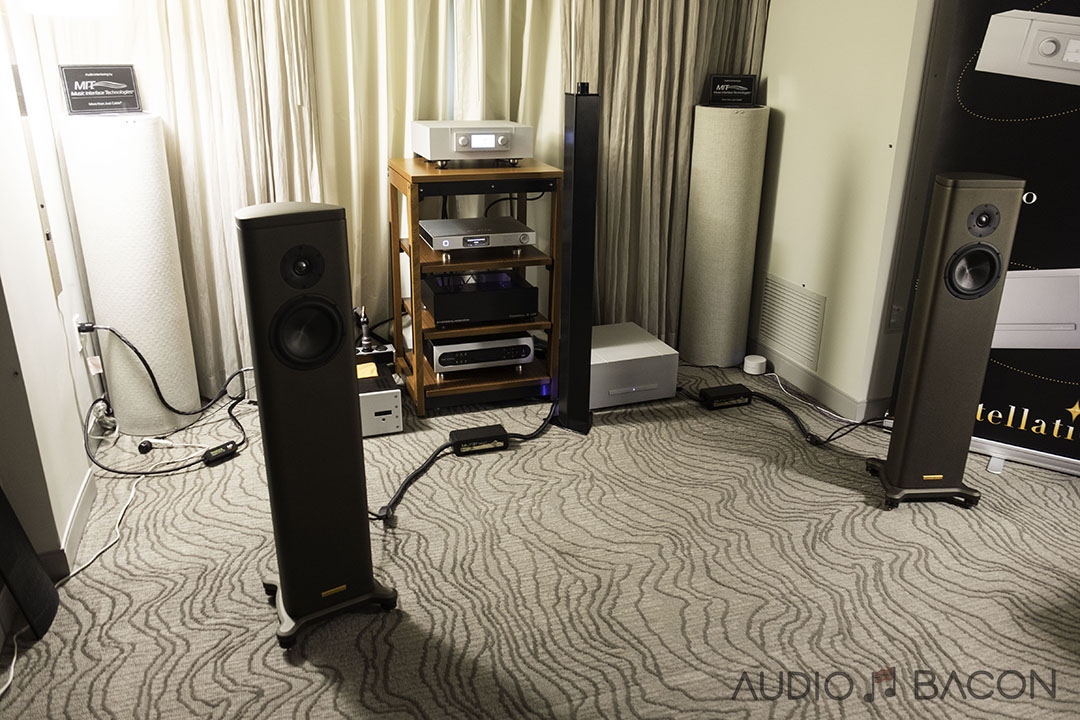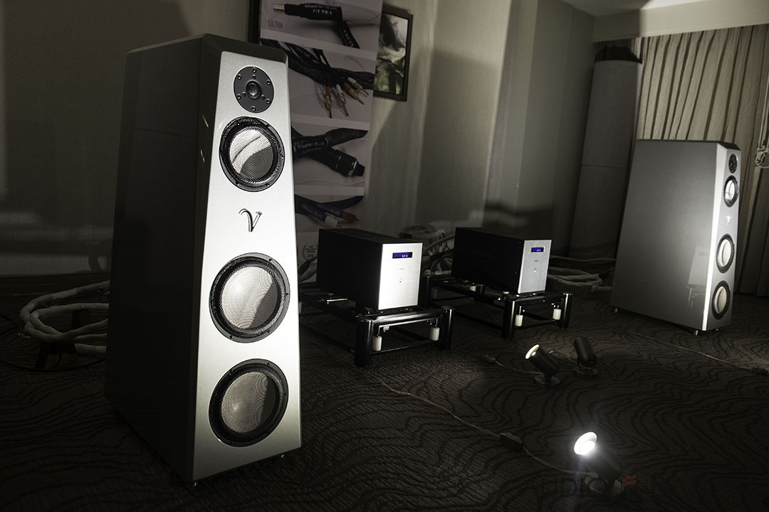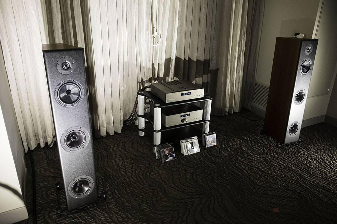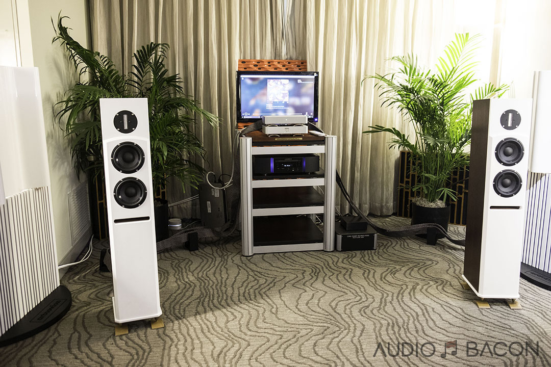 "Where's the sub?" I really enjoyed these Raidho D-1.1, 2-way loudspeakers. I was afraid to ask the price: $25,000. It features the Raidho Diamond Driver and the Raidho Ribbon Tweeter. Super groovy, rich, seismic, taut, and solid midrange. One of the more memorable setups at the show.[/caption]