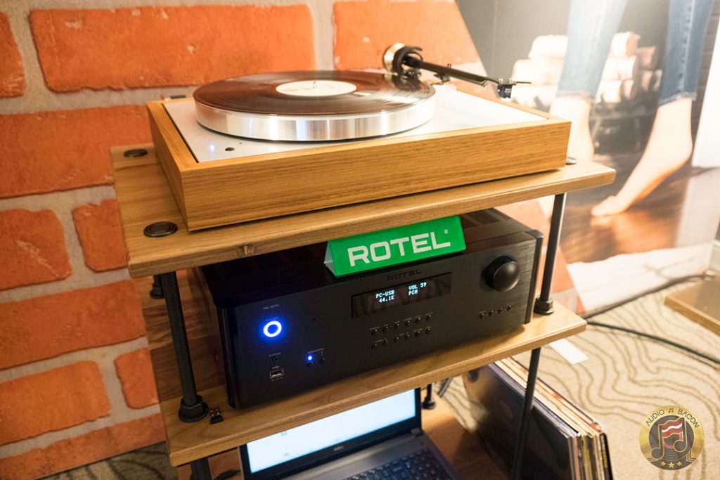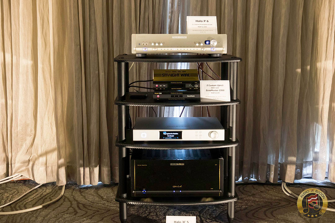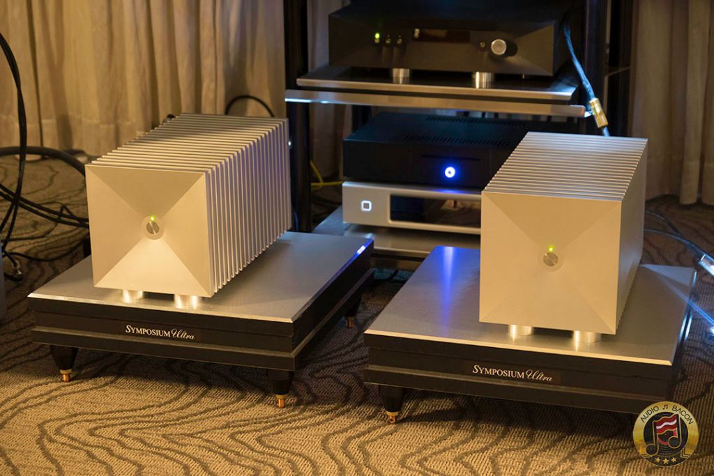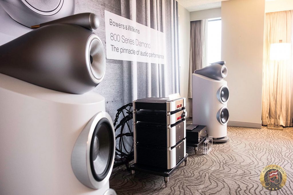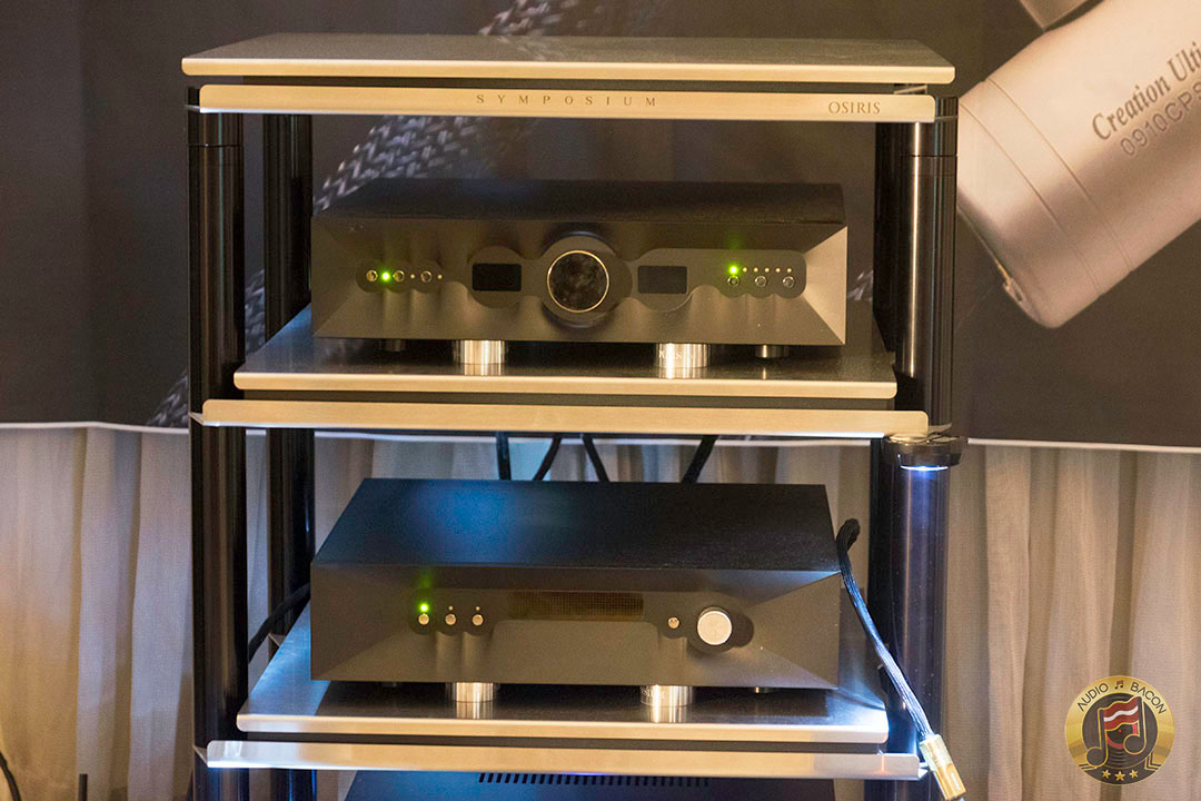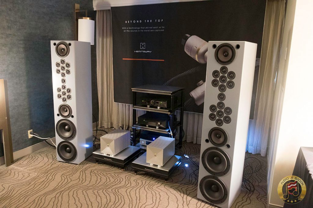 Von Schweikert Audio Ultra 9s ($200,000) in flamboyant red and VAC Statement 450i iQ integrated amplifier ($150,000). A sight to behold. Von Schweikert Audio V12XS Shockwave subwoofer ($11,500), Esoteric Grandioso P1 transport ($38,000), D1 monoblock DAC ($19,000 each), G-01 rubidium clock ($20,000), N-01 ($20,000), Critical Mass Olympus Luxury rack ($61,500), Kronos Pro turntable ($51,500), Airtight Opus 1 cartridge ($15,000). Revealing, fantastic layering and separation, with exuberance and air. Not a very warm sounding system but great for piecing out the many parts of the busiest and most involved of recordings.[/caption]