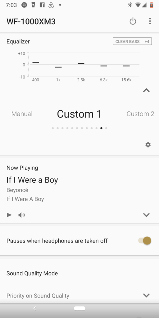 To get the best sound out of the WF-1000XM3, you will have to download the Sony Headphones Connect app and play with the equalizer. The beauty of the equalizer is that it's global. Which means I don't have to set them up independently on each of my players.