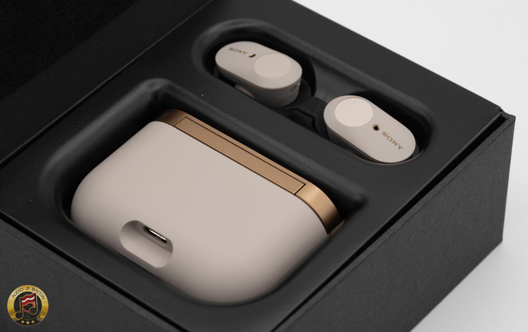 There is one major difference from the other TWS charging bays. The WF-1000XM3 has a rounded bottom and is laid flat facing sideways. What're the implications of this? Well, if it were to face upward, I could pull each earbud out at the same time. However, with this design, I have to actually hold the case with one hand, and take out each bud one at a time.