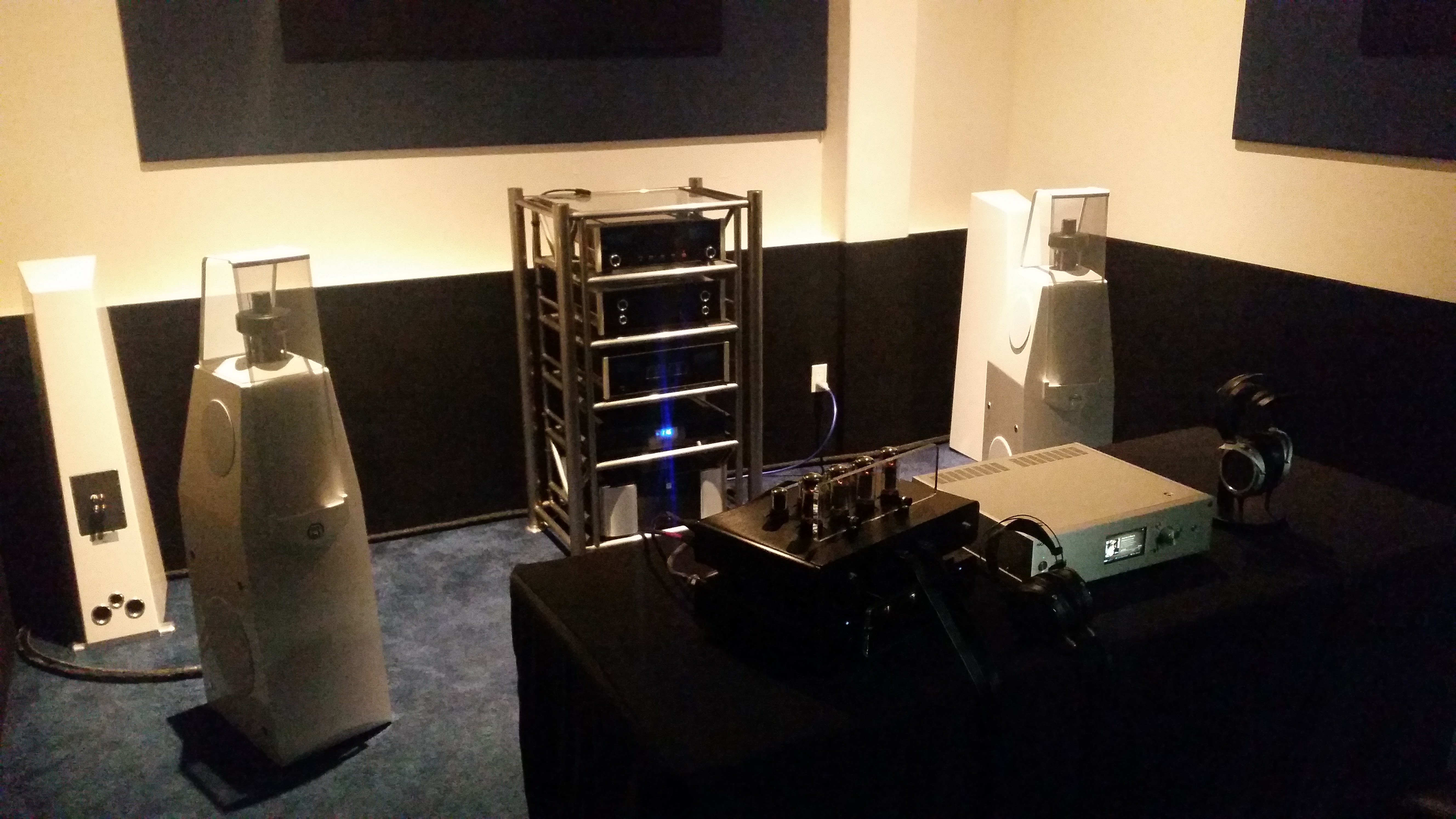 I was fortunate enough to stop by Source AV's Electrostatic Headphone Event earlier tonight. It was fun sharing impressions and talking audio with all the folks there. What I liked the most about this event were the private rooms. Listening under normal "show conditions" weren't applicable anymore and you're now able to audition gear in isolation away from all the noise. Truly a rare chance to experience headphones at their best without having to buy them upfront. Great work to all those involved in this truly incredible event.