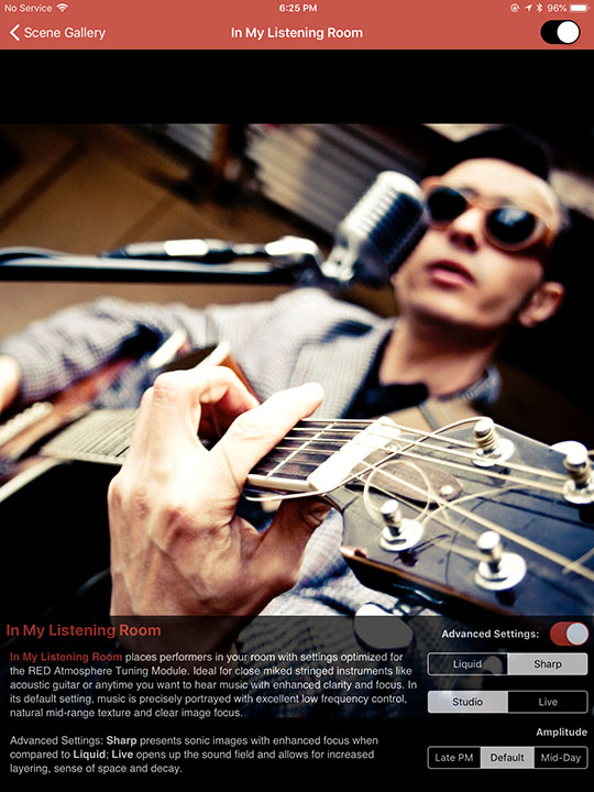 We particularly liked the Red ATM for the warmth and liquidity it added to the music. That in combination with the app set to "Ethereal" scene with the advanced setting set to "Air + Grounded" was our favorite app setting for this particular room.