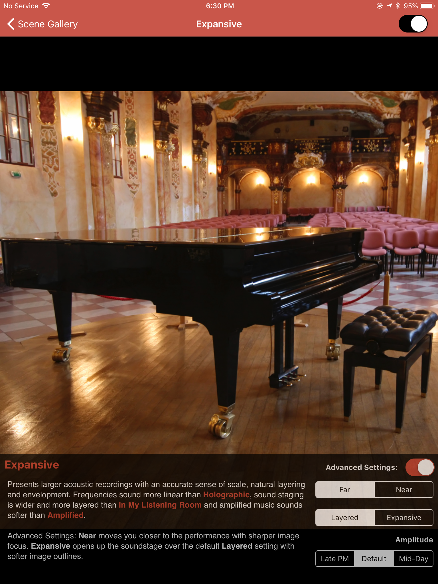 I can foresee the settings working differently for others depending on how their system is set up and how their room may be treated. For us, "Holographic" added a significant layer of detail, tactility, and depth to the music. It was particularly apparent in the