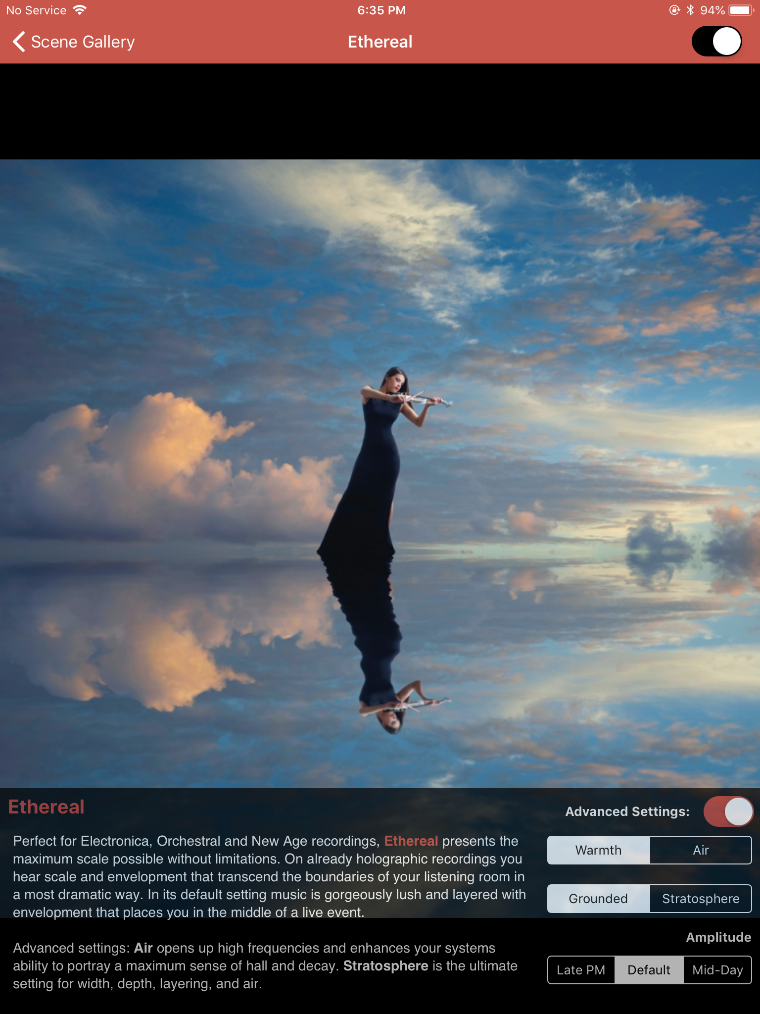 "Intimate Acoustics" brings you upfront and close to the action, while something like "Grand Canyon" almost lifts the room away as there's no roof and it's just full of air. "Amplified" provides atmospheric energy, hard lines, and shaper edges. By default, it's set at the "Holographic" when you have it enabled; and generally, that's how I leave mostly because I'm a more passive listener.
