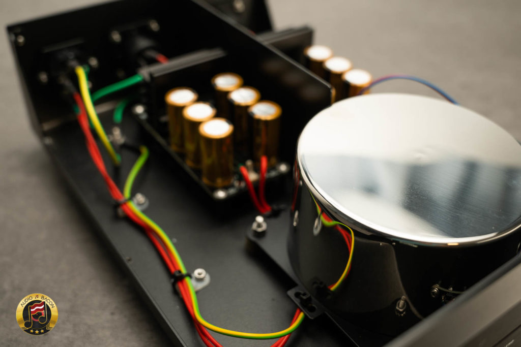 - Bespoke massive low-induction 100VA power transformer with magnetic and electrical shielding, sealed with epoxy resin, was selected for absolute best sound and noiseless operation